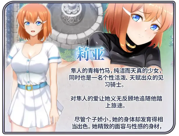 一款剧情刺激、拥有多重结局的轻度NTR RPG。扮演隼人,与美丽的莉亚一同追寻圣骑士之路。窥探她的内心,守护她不被他人染指。在充满诱惑的世界里,你能守护她的纯洁吗?